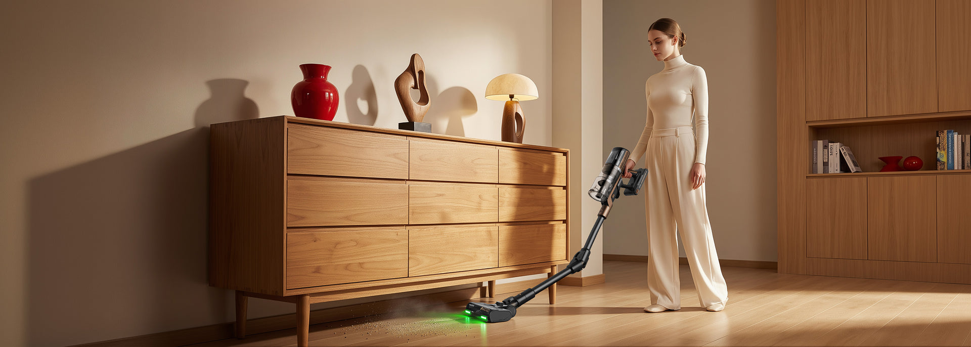 Questo aspirapolvere senza fili è particolarmente potente e si adatta in modo flessibile a diversi tipi di pavimenti e superfici.