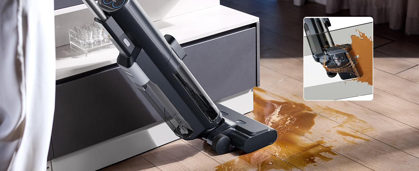 Il F20A unisce aspirazione, lavaggio e pulizia in un solo dispositivo. Grazie alla tecnologia di lavaggio con acqua pulita, al rullo da 380 giri/min e alla potente aspirazione, rimuove facilmente anche le macchie più ostinate come olio e salse dai pavimenti duri.