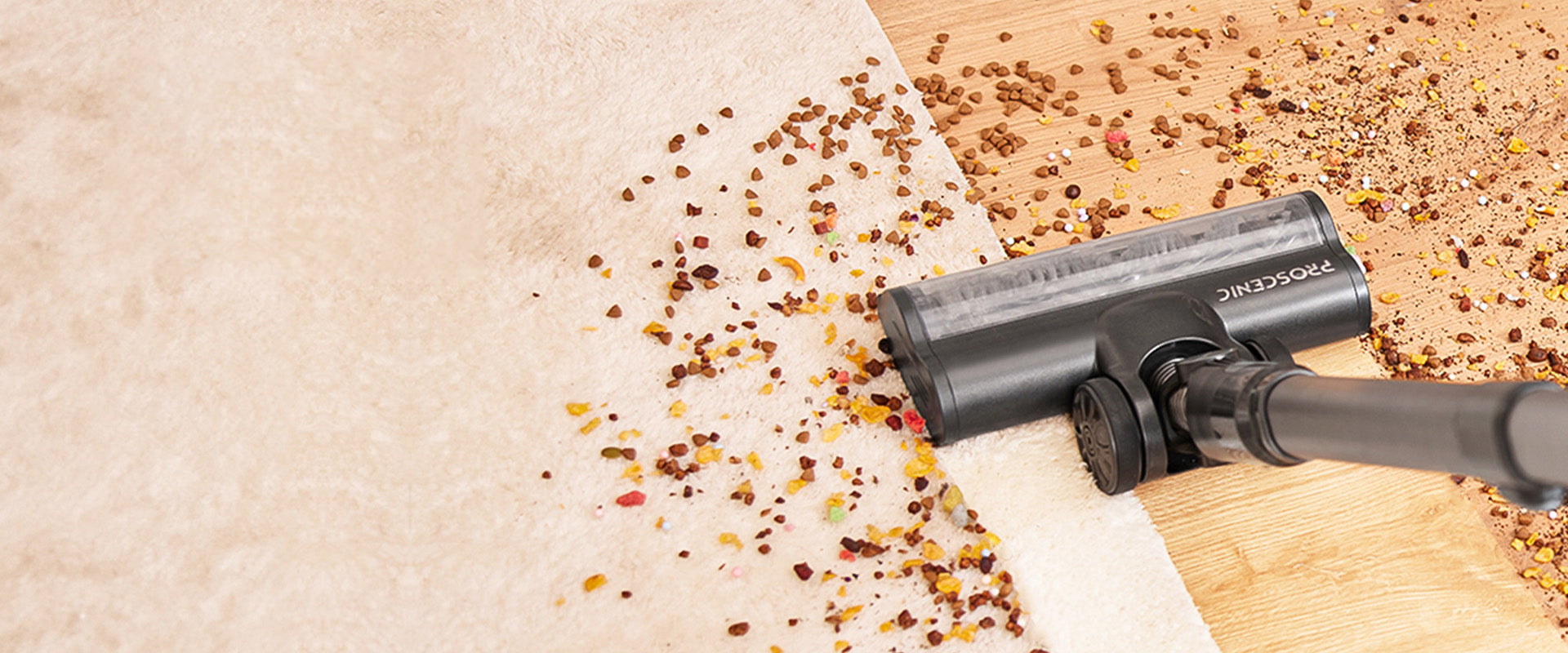 Grazie al motore da 550W e all’aspirazione fino a 45KPa, rimuove senza sforzo peli di animali, polvere, briciole e sporco da tappeti e pavimenti duri—con un livello di rumore sorprendentemente basso.